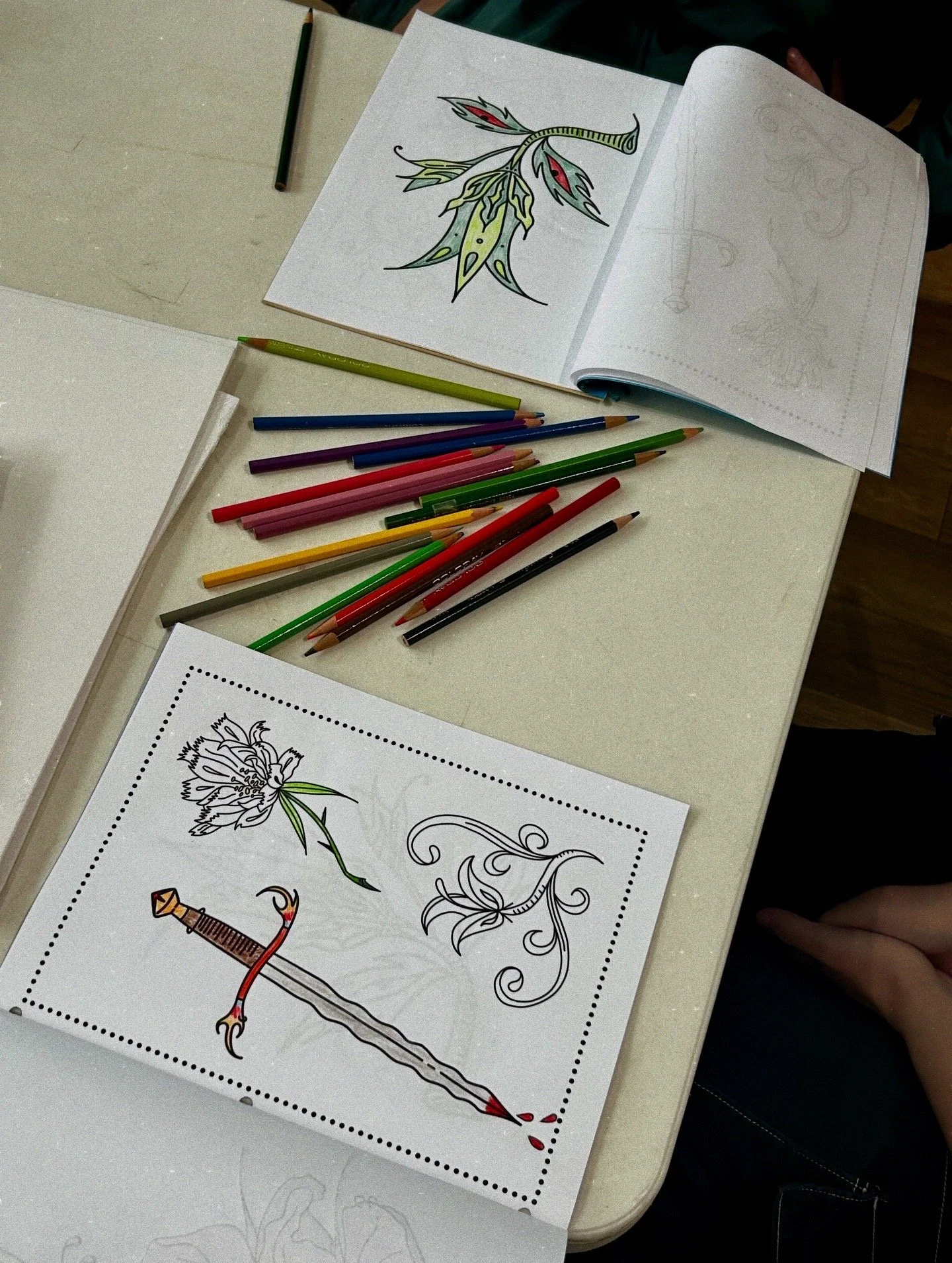 Attendees were given custom hand-bound coloring books made from Christina’s tattoo flash and folks brought clothing items they wanted to let go of in hope of them finding new homes. Leftover clothing was donated locally afterwards. Hoping to have more events like this in the future.